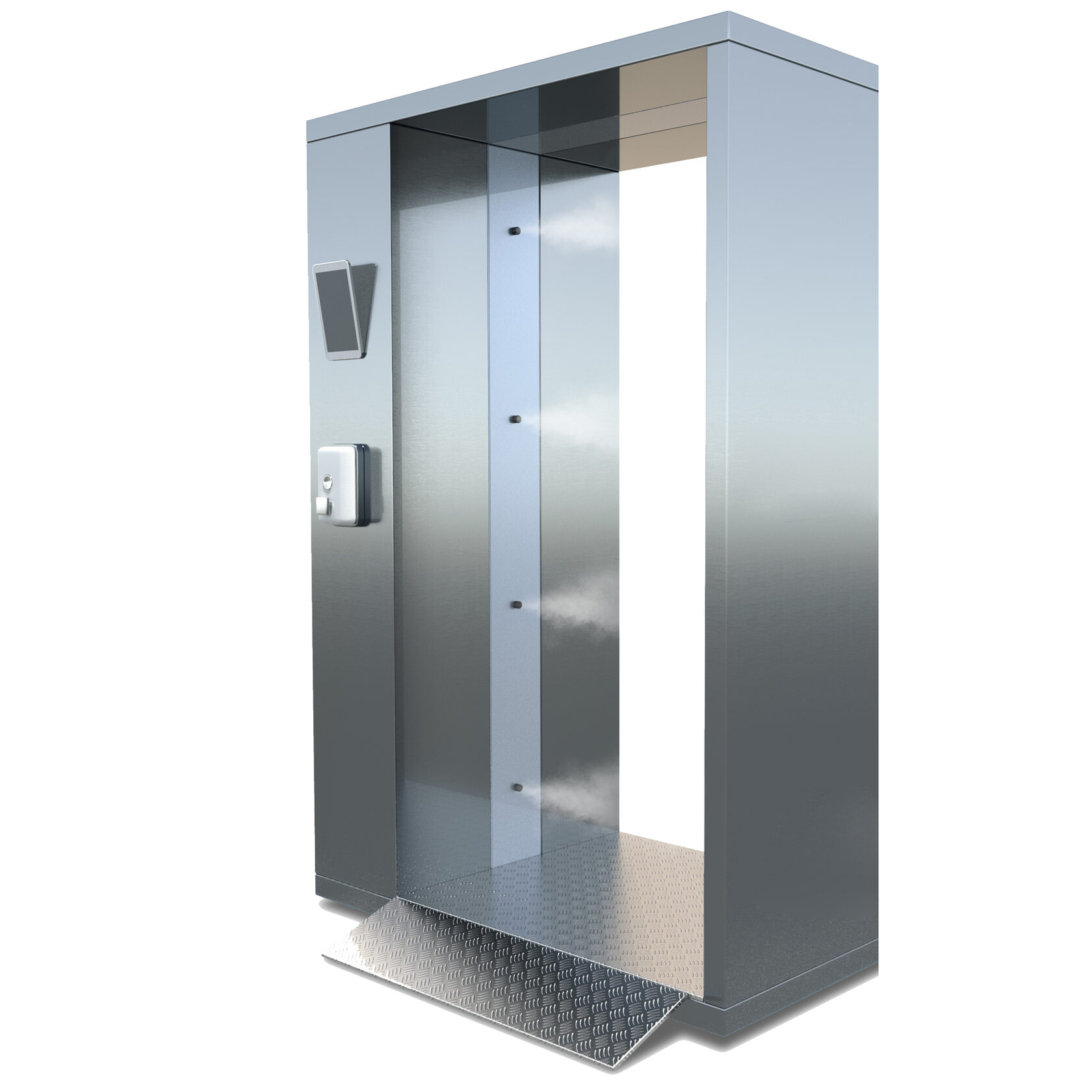 Внешние габариты (мм) ДхШхВ 810х1450х2300 Масса нетто (кг) 133 Ширина прохода (мм) 1000 Размер капель при распылении раствора 2-4 мкм Возможность настройки подачи дезраствора Да Время обработки одного человека 8-15 секунд Пропускная способность 200 чел/час Ёмкость бака для дезраствора 80 литров Количество циклов обработки 800-1000 Потребляемая мощность 600 Вт Напряжение 220 В Светодиодная световая индикация Да
